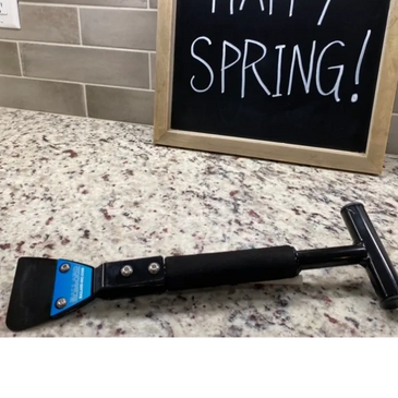 The Pro/Scraper is a easier way to scrape the packed grass from under your mower deck to maximize your machines performance. With the easy to grab T-handle and mid shaft foam grip it makes it easy to get leverage and scrape the deck clean of packed grass, mud and debris. Our replaceable 3” wide blade has a unique design for getting in th